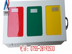 灯箱用于工程掩体内部空气质量状态的显示和报警,主要对三种空气质量情况进行报警:清洁、隔绝、滤毒。灯箱分别用三种颜色的灯光来对三种不用空气情况报警:清洁——绿色灯光;隔绝——红色灯光;滤毒——黄色灯光。