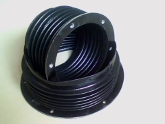 它可有效地保护油缸,气缸,活塞杆,丝杠、光杠、轴、立柱等零部件不受灰尘等外特的污染与破坏,能够随部件做伸开或压缩运动,垂直或水平使用均可。水平使用时建议使用塑料或铝的支撑环,保持保护套内腔与油缸之间有一定均匀的距离,延长使用寿命。阻燃硅胶布油缸防护罩拉伸长度大时可以在每个折中加上金属环,提高保护套的稳定性。连接或固定端通常使用金属法兰盘,也可以选择套箍式。