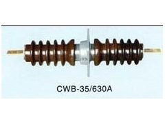 CWB-35/630一、概述 穿墙套管适用于工频交流电压为35kV及以下电厂、变电站的配电装置和高压电器中,作导电部分穿国墙壁或其它接地物的绝缘和支持用。套管适用于环境温度-40℃-40℃,不适用于在足以降低套管性能的条件下以及套管性能的条件下以及套管户内部分表面凝露情况下使用。 当套管环境温度高于 40℃,但不超过 60℃,套管的工作电流建议按环境温度每增高1℃,额定电流负荷降低1.8℃. 当套管在环境温度高于 40℃以及符合GB12944.1第5.1条中规定的最高允许发热温度的情况下使用时,允许其工作电流长期过载,建议按环境温度每降低1℃,额定电流负荷增加值不应大于额定电流的20%. 套管按使用场所可分为:户内普通型、户外-户外普通型、户外-户内耐污型、户外-户内高原型、户外-户内高原耐污型5种类型. 户外-户内耐污型适用于安装地点海拔不超过1000m地区,但安装地点应是无明显污秽地区. 户外-户内高原型适用安装地点海拔为3000m以下地区. 户外-户内高原型耐污型适用安装地点海拔为3000m以下的污染地区. 套管按所使用导体材料又可分为铝导体、铜导体以及不带导体(母线式)的三种类型.额定电流1500A及以下铜导体的穿墙套管作为过度产品,其主要尺寸及特性按GB12944.2附录B的规定.其型号字母B表示强度等级为7500N.其它各类套管的弯曲强度等级分类如下,母线穿墙套管的使用电流决定用户采用的母线尺寸 二、结构简介 套管有瓷套、安装法兰及导电部分装配而成,母线穿墙套管不带导点部分.瓷套与法兰固定方式,除35kV高原型以及部分耐污型产品采用机械卡装外,其余均用水泥胶合剂胶装;铜志电杆采用定心垫圈和螺母固定,铜、铝导电排采用定心垫圈和开口销固定,对母线穿墙套管所带安装用夹板,出厂时未加工开口尺寸,以便用户根据实际选用的母线规格型式自行确定开口尺寸.