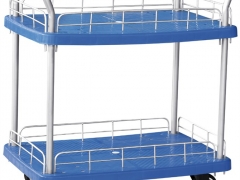 防静电手推车采用不锈钢骨架、线网板、钢柱和防静电尼龙轮子制成,网板四角圆柱处配装有调节