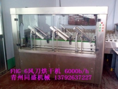 8、该机优于电热管加热式烘干机,电热管加热式烘干机很容易因毛刷造成瓶子外壁二次污染,且有时去水效果不佳。风刀式烘干机无毛刷带来的粉尘污染,免维修。玻璃瓶能轻松去水,陶瓷瓶使用效果最佳。