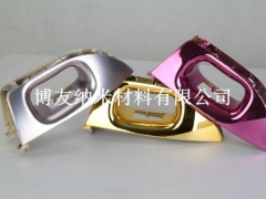 纳米喷涂是通过喷涂的工艺达到电镀的效果,应用化学反应的原理使被喷物体表面呈现镍色、金色、铜色、枪黑色(红黄紫绿蓝)等各种彩色镜面高光效果。无需做复杂的前期处理,不用做导电层。无任何三废排放和有害重金属处理等环保问题。可完全替代电镀、真空镀的一项新科技,且投资小,成本低。加工件不受任何体积大小和形状的限制。可以在金属、树脂、塑料、玻璃、陶瓷、亚克力、木材、塑木、磷镁、钙塑、水泥等各种材料上喷镀出镜面高光效果 。