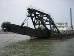 青州水库用绞吸式挖泥机是在疏滩工程中运用较广泛的一种船舶,青州水库用绞吸式挖泥机是利用吸水管前端围绕吸水管装设旋转绞刀装置,将河底泥沙进行切割和搅动,再经吸泥管将绞起的泥沙物料,借助强大的泵力,输送到泥沙物料堆积场,青州水库用绞吸式挖泥机的挖泥、运泥、卸泥等工作过程,可以一次连续完成,青州水库用绞吸式挖泥机是一种效率高、成本较低的挖泥船,是良好的水下挖掘机械。