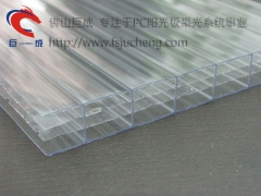 三层/四层/五层/六层/蜂窝强力结构阳光板相对于双层普通通用结构阳光板具有更优秀的抗冲击、隔音、隔热保温性能,而且在安装施工方面因为承受局部压力性能更好,可以加大支撑骨架的间距,从而获得更大的遮盖物使用面积以及降低安装成本,广泛应用于农业温室大棚,绿色生态餐厅,大型体育场馆采光天幕,高速公路隔音屏障等。