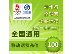 全国通用移动100元话费/24小时快速充值 一键到账