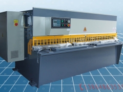 剪板机剪用于剪切板料板材,剪切面要求很高的直线度和平行度,减少板材扭曲。剪板机的上刀片固定在刀架上,下刀片固定在工作台上。工作台上安装有托料球,以便于板料的在上面滑动时不被划伤。后挡料用于板料定位,位置由电机进行调节。压料缸用于压紧板料,以防止板料在剪切时移动。护栏是安全装置,以防止发生工伤事故。回程一般靠氮气,速度快,冲击小。配有数控系统及伺服控制的数控剪板机工作效率及剪切精度更加优良!