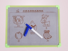 请将画写板专用笔加满清水即可书写、画画,效果如墨,待水份干后,图案消失,可重复多次使用。是家庭的必备物品,也是学校提升、激发儿童画画、写字能力的好帮手!一张万用双语画写板等于1200本练习本!请各位亲们一定要记得。
