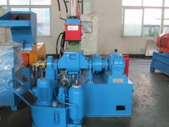 密炼机是一种设有一对特定形状并相对回转的转子、在可调温度和压力的密闭状态下间隙性地对聚合物材料进行塑炼和混炼的机械,主要由密炼室、转子、转子密封装置、加料压料装置、卸料装置、传动装置及机座等部分组成。   密炼机是在开炼机的基础上发展起来的一种高强度间隙性的混炼设备。自1916年出现真正意义上的型密炼机后,密炼机的威力逐渐被人们所认识,它在橡胶混炼过程中显示出来比开炼机优异的一系列特征,如:混炼容量大、时间短、生产效率高;较好的克服粉尘飞扬,减少配合剂的损失,改善产品质量与工作环境;操作安全便利,减轻劳动强度;有益于实现机械与自动化操作等。因此,密炼机的出现是橡胶机械的一项重要成果,至今仍然是塑炼和混炼中的典型的重要设备,仍在不断的发展和完善。