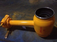 【产品简介】 单放散全焊接DN100球阀在球阀阀体的开关接头上联接一带管接头的长心柱,长心柱包括一长心柱体,外套有保护管;在球阀阀体控制的管道中设放散单元装置,其包括一与管道贯通的放散基座,安置于放散基座上的放散管,放散管的上头端设放散阀,并通过支架使放散单元装置与长心柱相互固定,其实用,使用方便,启闭便捷,利于管道的检测。