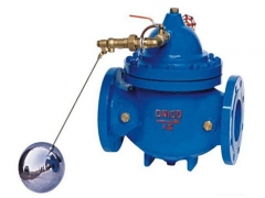 100X遥控浮球阀是兼具多种功能的水力操作式阀门,主要安装于水池或高架水塔的进水口处,当水位达到设定的高度时,主阀由浮球导阀控制关闭进水口停止供水;当水位下降后,主阀由浮球导阀控制打开进水口向水池注水,实现自动补水。液位控制精确,不受水压干扰;隔膜式遥控浮球阀可随水池的高度及使用空间任意位置安装,维护、调试、检查方便、密封可靠,使用寿命长。隔膜式阀门性能可靠、强度高、动作平稳适用于450口径以下的管道。
