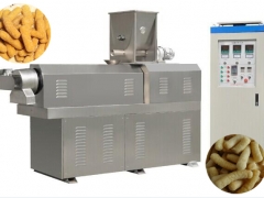 拌粉机→双螺杆膨化机→整形切断机→自动油炸机→八角筒→包装机