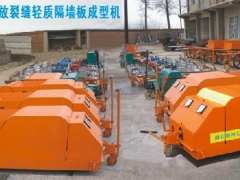 防裂缝轻质墙板机械,针对凹凸、双V型墙板,安装后接缝容易出现裂缝问题,多年实际经验研究改进其独特的燕尾互锁防裂缝技术独特功能,从根本上解决了墙板裂缝问题,属国内首创,并获得国家专利;此外在原材料应用上大胆探索,广泛利用城市常见的工业废渣等环保材料和普通3.25水泥,经过科学配比,使现有36%空心率的轻质隔墙板在生产过程中,再一次均匀膨胀使内部形成多孔,用无价的空气代替珍珠岩等轻质填充物。比立模成型机生产的墙板强度高三倍,同等人工,生产效率提高12倍,成本降低2倍。