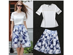 货号: F2033-8562组合形式: 两件套裙长: 中裙款式: 其他/other袖长: 短袖领型: 圆领袖型: 其他腰型: 中腰衣门襟: 拉链裙型: 大摆型图案: 其他流行元素/工艺: 拼接 印花面料: 雪纺成分含量: 30%及以下材质: 其他年份季节: 2015年夏季颜色分类: 两件套尺码: S M L XL