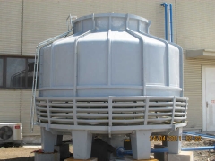 冷却塔是利用水和空气的接触,通过蒸发作用来散去工业上或制冷空调中产生的废热的一种设备。基本原理是:干燥(低焓值)的空气经过风机的抽动后,自进风网处进入冷却塔内;饱和蒸汽分压力大的高温水分子向压力低的空气流动,湿热(高焓值)的水自播水系统洒入塔内。当水滴和空气接触时,一方面由于空气与不的直接传热,另一方面由于水蒸汽表面和空气之间存在压力差,在压力的作用下产生蒸发现象,带到目前为走蒸发潜热,将水中的热量带走即蒸发传热,从而达到降温之目的。 冷却塔的工作过程:圆形逆流式冷却塔的工作过程为例:热水自主机房通过水泵以一定的压力经过管道、横喉、曲喉、中心喉将循环水压至冷却塔的播水系统内,通过播水管上的小孔将水均匀地播洒在填料上面;干燥的低晗值的空气在风机的作用下由底部入风网进入塔内,热水流经填料表面时形成水膜和空气进行热交换,高湿度高晗值的热风从顶部抽出,冷却水滴入底盆内,经出水管流入主机。一般情况下,进入塔内的空气、是干燥低湿球温度的空气,水和空气之间明显存在着水分子的浓度差和动能压力差,当风机运行时,在塔内静压的作用下,水分子不断地向空气中蒸发,成为水蒸气分子,剩余的水分子的平均动能便会降低,从而使循环水的温度下降。