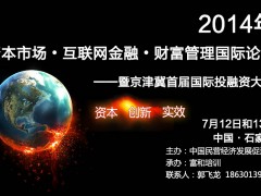 《2014年资本市场?互联网金融?财富管理国际论坛——暨京津冀首届国际投融资大会》将于7月12日—13日在石家庄火热举办。金融业界顶尖人物史纪良、范剑平、李建良、阚治东、郑锦桥、黄震、韦洪波以及国际家族基金协会创始人等将亲临现场。 1000余名企业领袖、300余家国内外金融机构、100余位业界名流、10余家最具影响力的协会组织将与会深度交流。