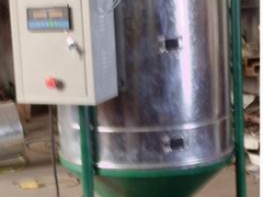 家用谷物烘干机6千8,适用一家一户使用的两相电,针对稻谷小麦绿豆等颗粒粮食作物。烘干热风温度由智能温湿度控制仪控制加热管产生,温度可随意设置。谷物倒入把距地面半尺的料斗后,随热风吸入料斗底部上粮风道里,与热风混合气化表皮水分,飘入入顶部粮仓里闷热出汗。使谷物内部水分往外椮,润华谷物表皮硬壳,方便二次循环烘干。加热管不与稻谷接触,不会烧伤烧糊粮食,热风上粮传温排湿,除湿去糠落入上仓,从仓顶堆积落到仓底热捂出汗,缓落中与热风道的透出的热风进行热交换,二次气化颗粒粮食表皮的水分,吸满一仓到刻度线500斤后,再抽开仓底插板,粮食下滑滚落入上粮热风道中循环强制去水,二次由仓底热风循环吹到仓顶落入仓体内。热风上粮,闷热出汗,气化脱水。循环四到五遍,干到满意时,从烘干仓底开闸放出,粮食流动循环干燥,不烧伤粮食,不污染粮食。干燥温度调控40-90℃。分热风吸粮-闷热出汗-对流风干-锥底滚落-热风循环五工位,不影响种子发芽。率简易机型仓容500斤,刚收割的稻谷需烘干2-3小时烘干成成品,不会发霉腐烂,日干万斤,使用两相电共5KW,¥6800元重60公斤,外形0.8X0.8x2米。特别适合种粮农户自备使用