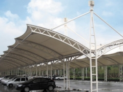 膜结构自行车棚/膜结构自行车棚供应/膜结构自行车棚厂家/飞翔潍坊飞翔膜结构工程有限公司是一家集索、膜结构及异型钢结构等设计开发、加工制造、施工安装、维护于一体的高新技术工程公司。公司拥有高素质的专业技术人员,使用国际先进的 MCAD 、 FSCAD 及 3D3S 设计软件,能够独立完成膜结构的建模、荷载分析、结构计算及裁剪工作。公司现有现代化生产制造基地并全套引进国际先进的膜材裁剪及焊接生产线、膜材年加工能力 10 万平方米。工程全部采用进口膜材,产品制造严格按照国际 ISO9001 质量体系标准控制。公司业务遍及全国各地,高标准的工程质量得到了广大客户的广泛赞誉。公司开发的膜结构建筑风格独特,艺术性强,具有浓厚的现代气息,广泛应用于体育场馆、高速公路收费站、加油站、大型停车场、博览会展厅、公共场所、休闲场所、景区装饰等。公司将秉承“技术领先、质量求精、服务至上”的宗旨、全力使客户享受到本公司更多的独特设计、结构新颖、造型优雅的膜结构精品工程。