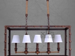 【品 名】美式乡村复古吊灯工业锈色麻绳长方形灯饰铁艺餐厅吧台工程吊灯具