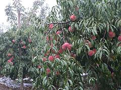 青州市三八红旗园艺场(映霜红示范园)中国映霜红之源头,位于山东省青州市谭坊镇小尹村。本园艺场有桃树示范园200余亩。本园艺场有十月份的映霜红、映霜红桃、八月份的沙壤红、红不软。9月份的大叶蜜桃,二老板,三老扳等生产与管理上的丰富经验,当前具有成熟、具体的针对映霜红的全面技术,当然,还有待与广大同行的老师、朋友们共同研讨、共同发展。 映霜红于2010年10月18日,在我三八红旗园艺场映霜红示范园通过品种鉴定,由高东升提议而命名:映霜红。这天山东卫视《乡村季风》在我园艺场进行了现场实况报道。针对映霜红做了细致的考量和品评。果品专家和《乡村季风》栏目组的工作人员和所有在场的众人,对映霜红赞不绝口。经科技情报机构查新,审核含糖量居全国之首。含糖量18%以上,糖度26%。2012年10月,央视七套针对映霜红做了专题实况报导。青州电视台已多次来我园现场报道,让更多人认识映霜红,通过映霜红发家致富。当您选择映霜红,规模化发展后,年创效益十万,百万甚至千万,完全有可能。 郑重声明:对于冒用本场资料,对外销售假映霜红行骗者,本场将深究当事人的法律责任。