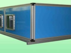 好度吊顶式(超薄型)立式.卧式风柜及排风柜, 况其高效率.容易安装,冷(热)量大等优点广东省泛应用于各小.中大型空调系统中.我公司产品采用的原材料及其他配件都是从国内外之名优产品精挑出来的,既融合中外高新科技,又符合我国的使用要求.特点:1.制冷(热)量大.耗能少. 表冷器(及加热盘管)采用铜铝套片,二次翻过.机械整体胀管结构形式,确保热交换器的高效可靠.稳定.优质的风扇及优化的风道.使系统高效节能.2.噪音.振动极小. 多叶式风扇经严谨的逐一平衡校较以及表面抗氧化外理,电机及风机为悬浮,结构,独立避振弹簧,机体内部配以优良的消声系统.3.体积小.配置灵活,适应力强 根据不同的需要,可灵活地布置出风口,回风口及配以各种特殊的功能.(如:中高效过滤器.加湿器.除菌装置.各种调节元件)使于安装及适应与各种复杂的环境.4.结构坚固.强力防腐.经久耐用. 复合式或单铝通框架结构,双层面板表面经多重处理及烤漆.内为高压发泡硬质聚氨脂.效果显著的隔热.排水系统.5.安装,检修方便 产品采用坚固.45度角斜边带吊孔的易半夜式底架.要电机侧及过滤网侧都设有检修门. 复合式铝框结构,内置优质保温材料,无冷桥现象。结构灵活,检修方便,特别对于大型机组,易于现场安装。 单铝通框架,结构坚固,机械强度高;框架与库板采用凹槽连接无需螺丝装配,严密不漏,无螺栓的设计,外观优美。 优质风机,双进风,双宽度,前倾或后倾离心设计。风机及电机为悬浮结构,独立避振系统,隔离了振动源与机体,从而使噪音和振动减至最低。 双层面板结构中,外板采用优质钢板经多重处理及喷涂制成,内板由镀锌钢板,中间为高压发泡的硬质聚氨脂。隔音、防振效果显著,在应用于各种工况均无析水现象。