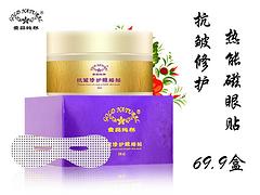 抗皱润肤修护眼膜贴(蚕丝热磁能)蚕丝热磁能眼膜贴 特有的磁能点加蚕丝是日本高科技产品,生物磁点能更深层的导入肌肤,让肌肤周围的血液循环加速,进而促使胶原蛋白、弹性蛋白再生、修护已经老化的细胞纤维充分吸收所需营养,淡化黑眼圈、缓解眼肌肤疲劳,改善眼周围暗沉肤色,淡化细纹,缓解眼袋! 使用方法:清洁面部取出,用指尖轻轻展开,即见一张完整的眼膜贴。敷于眼部周围,10-20分钟后揭去眼膜贴轻拍按摩,残余精华完全吸收后洗净干净。