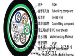GYTA53光缆的结构是将250μm光纤套入高模量材料制成的松套管中,松套管内填充防水化合物。缆芯的中心是一根金属加强芯,对于某些芯数的光缆来说,金属加强芯外还需挤上一层聚乙烯(PE)。松套管(和填充绳)围绕中心加强芯绞合成紧凑和圆形的缆芯,缆芯内的缝隙充以阻水填充物。涂塑铝带(APL)纵包后挤一层聚乙烯内护套,双面涂塑钢带(PSP)纵包后挤制聚乙烯护套成缆