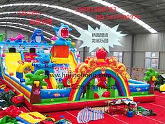 大型充气攀岩波浪滑梯--龙鲨乐园, 规格是18x10m,现货供应,所用PVC夹网材料安全环保,经久耐用,造型美观大方逼真,吸引力强,前面有鲨鱼滑坡, 螃蟹滑坡, 鲨鱼大攀岩滑梯,钻圈,小马,小鹿等可以骑得小动物,摇摇船,造型丰富,设计合理, 后面是波浪形的大滑梯, 以海洋环境为背景, 鲜亮美观, 欢迎选购
