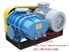罗茨鼓风机是一种容积式动力机械。一对相互啮合的叶轮将进,排气口分开,由同步齿轮传动,两叶轮在汽缸中作等速反向旋转,在旋转过程中进气口的气体不断地被叶轮推移到排气口,从而达到强制排气的目的。