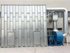 工作原理 在系统抽风机的作用下,含粉尘的气流从吸尘的气流从吸尘风口进入除尘器预收尘室,含尘气流在档流板碰击下气流便流向灰斗,同时速度减慢,在惯性和粉尘的作用下,较粗颗粒粉尘直接落入灰斗并从排灰机构中卸除,起到预收尘的作用,其它较轻的粉尘随气流向上,被吸附在过滤的外表上,过滤干净后的气体从上箱出风管排出,随着过滤工况的持续,急剧在滤袋表面的粉尘越来越多,设备运行阻力也变大,必需采取脉冲清灰,先切断任意一室的出口通道,然后进行脉冲清灰并经过若干秒的自然沉降,这样粉尘被彻底清除。
