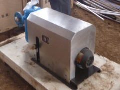 旋笛结构低频清灰器是利用喉声发声原理,用旋转的开关把气流切成断续流而成声,用低压气流驱动,声功率与气流功率之比可达70%--80%。由于锅炉烟气中还有大量的粉尘,极易造成换热器积灰和结垢的现象,影响热热效率。大振幅低频声波输入炉膛内,高能量、大振幅声波使贴壁粒子产生振荡,破坏其结合力;声疲劳效应可使结垢层断裂。在自身重力及风力的带动下,达到清灰的目的。