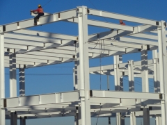 内蒙古多力邦钢结构有限责任公司位于呼和浩特市鸿盛高科技园区,多力邦钢结构包头分公司位于包头市铝业工业园区铝业大道与110国道交口处,集宁分公司位于乌兰察布市宏远橡胶城内,我公司是集钢结构、彩板设计、制作、安装于一体,可承接轻钢、重钢(十字柱、箱形柱、圆管柱、格构柱、弧形箱型梁、H型梁、三叉梁)、管桁架、网架等大中型钢结构厂房、防风抑尘网、物流仓库、多高层建筑及公共建筑和通讯塔的专业公司。呼市公司生产车间12000余平方米,包头公司生产车间18000平方米拥有中级以上工程技术管理人员43人,专业制作人员180人、安装人员100人,年生产规模40000吨。