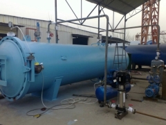 规格及技术参数:技术特性: 设备压力:-0.1~4.0MPa 真空度:0~-0.098MPa 设计温度:0~180摄氏度 工作介质:水溶性防腐、阻燃、染色剂。工艺:满细胞法,高低频压法,双真空法。 年产量:5000立方米~20000立方米规格参数:规 格 容 积 单罐处理量 DN1200*8000mm 9.6立方米 7.0立方米 DN1500*8000mm 15.6立方米 11.0立方米 DN1800*8000mm 21.6立方米 16.5立方米 DN2000*8000mm 27立方米 21.0立方米 DN2400*8000mm 40立方米 25.0立方米 长度可根据需要择:6400mm;10000mm;12000mm;14000mm.