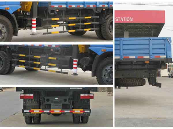 | 其它 | 备注:该车上装选装折臂式吊机;吊机型号,质量,最大起升载荷,整车高度,整备质量,载质量分别对应为SQ4S:1220Kg/4000Kg/3250mm/5005Kg/4200Kg;SQ4Z:1250Kg,4000Kg/3100mm/5035Kg/4170Kg。随底盘选装驾驶室。防护材料:Q235A碳钢,连接方式:左右侧面及后下部防护均采用焊接连接,后部防护断面尺寸(mm):100×50,后部防护离地高度(mm):520。 | ||
