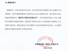 公司产品质量稳定,货源充实,价格合理,交货及时,如若订购日贸机电的LOCK全自动封箱机,公司将在双方协商的时间内进行发货,您的货款可以通过银行转账进行支付,我公司还将提供优质的售后服务。我公司郑重向你承诺:保证以好的质量,以能让用户接受的价格,让人满意的售后服务,来答谢新老客户。