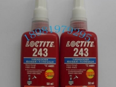 LOCTITE汉高乐泰243胶水、乐泰243螺纹锁固剂、耐机油/中强度。快速固化,可用于惰性表面,容油性好。易拆卸,可在轻微油质的工作表面上使用。用于乐泰预涂剂 Dri-Loc 螺栓拆装后重装时锁固。可以用于 M20 以下螺纹的锁固与密封。