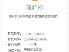有需求的客户可以通过抵押的形式进行流转标,在贷款时间(1至12个月)内享受即投即计息,资金无闲置利息,还款方式支持等额本息按季还款到期还本还息按月付息先息后本等方式。货款到账时间是T+1。