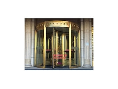 自动旋转门由固定框架、帽头、贴地包边、边墙玻璃组成旋转门的外框,中间的展台和门扇为旋转部分。自动旋转门由程序逻辑控制器(PLC)、计算机中心处理装置(CPU)和调速 旋转门 电路等控制器件所组成的微电脑控制系统进行控制,门的运行完全自动门、特殊情况下才进行手动操作。铝型材和钢材框架全部外饰有不锈钢、氟碳喷涂等,天棚吊顶采用铝塑板,颜色由客户选定,经装饰后的旋转门显得格外华丽壮观。