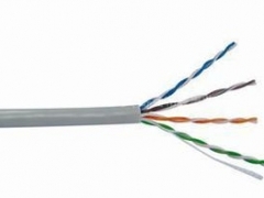 超五类双绞线也是采用4个绕对和1条抗拉线,线对的颜色与五类双绞线完全相同,分别为白、橙、白绿、绿、白蓝、蓝、白棕和棕,裸铜线线径为0.51mm(线规为24AWG),绝缘线径为0.92mm,UPT电缆直径为5mm。