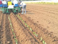 更换栽植传动机构链轮,株距可调;秧苗投放采用横向投苗装置,保证作业人员有足够时间投放秧苗,有效地减少了移栽漏苗率,提高了移栽效率。施水装置通过电器感应元件有效地实现定点定量施水,极大地提高了秧苗成活率。