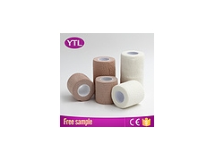 全棉自粘弹性绷带采用涂有医用压敏胶或天然乳胶的纯棉棉布、无纺布、肌内效贴布、弹力布、医用脱脂纱布、氨纶绵纶纤维、弹力无纺布与天然橡胶复合而成的材料制成。规格(cm):2.5X450 5X450 7.5X450 10450 15X450 (特殊规格按客户要求制定) 四、产品主要性能 应色泽均匀、切口整齐、无异味、污渍、及毛边外露等缺陷;扯断力应不小于10N/cm;自粘性应不小于3N/cm;伸长率应不小于50%;应无皮肤刺激。