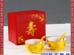 在给亲人祝寿时用上特意为其定制的瓷碗,上面写上祝福的话语,或寿星的照片,在宴席开始时具有独特的纪念意义,还可送给亲朋好友将是永久的纪念!寿碗的来历:“碗”谐音同“晚”,寓意延年益寿。大寿之日,给众邻亲戚送寿碗寿杯,以赠人们一个好兆头。据说,从前在参加老人寿辰时,有些讨寿者喝的酩酊大醉时,就将寿碗装进衣袋,或大抢出手,不仅拿寿碗,而且拿碗盏,此举主家并不责怪,反认为“有福有寿”。有的人宴后向主人讨要寿碗,也有主人主动赠庆寿者“寿碗”一对,使受赠者沾老寿星之福,俗说有“延年益寿”之兆,是一种美好的祝愿。