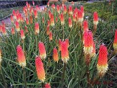 火炬花又叫火把莲,是多年生草本植物。总状花序着生数百朵筒状小花,呈火炬形,花冠橘红色,花期为6~7月。火炬喜欢温暖湿润阳光充足环境,也耐半阴。适宜生长于疏松肥沃的沙壤土中,例如土层深厚、肥沃及排水良好的沙质壤土。栽植前应施适量基肥和磷、钾肥。幼苗移植或分株后,应浇透水2~3次,及时中耕除草并保持土壤湿润,约2周后恢复生长。如果花期遭到金龟子咬食花朵,可用0.2%氧化乐果喷洒。火炬花耐寒性较强,露地栽培应适当覆草保暖,以利安全越冬。可群体种植于草坪中或假山石旁,用作配景。