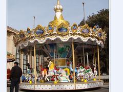 豪华旋转木马,精美的装饰、动感的音乐,使游客就像真正骑上了奔腾的野马,整个起伏追逐的游玩过程给游客留下一段美好的回忆,使游客在其中回忆起童年的点点滴滴。使游客在现在社会的快速生活节奏下进行一次心灵的旅程。 上传动木马大盘依靠回转支撑来实现旋转,而马的上下摆动则依靠电机带动曲轴来实现。而下传动旋转木马和防上传动旋转木马则是依靠大盘底部的电机带动轮子链接曲轴实现大盘旋转和马的上下起伏同时进行。 设备所用钢材采用正规大厂生产国标优质包边钢材、不锈钢钢管,优质橡胶轮胎。正规大厂生产的优质电机和差速机。经久耐用故障率低,所有玻璃钢制品均采用汽车无尘烤漆,漆面光滑细腻颜色鲜艳使用时间持久,不易褪色。设备做工细致,安全可靠,深受国内外客户好评。