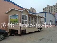 苏州洁源康环保科技有限公司专业生产、研发移动厕所、环保厕所、生态厕所、活动岗亭的实体生产企业。款式新颖,价格实惠,可以按客户要求加工定做。 移动厕所与传统厕所相比,优势非常明显!移动厕所不受任何工作环境的限制,外型结构轻巧,颜色搭配合理,适合于城市街道、公园绿化、车站、码头、旅游景点、别墅区、新建小区、大型工地、广场、人口密集的公共场所及繁华商业街等。移动公厕具有可移动、可组合、方便运输等优点。而且移动厕所的内部配置要高于普通的固定式厕所。