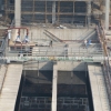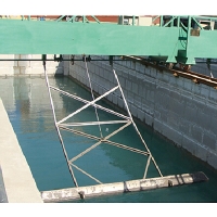 撇渣板与刮泥板的升降机构可以有两种布置形式:第一种形式,刮泥板与撇渣板同向工作及升降,即刮泥机运行时,撇渣板与刮泥板同时进行撇渣与刮泥,回程时撇渣板与刮泥板同时提出水面;第二种形式,撇渣板与刮泥板逆向工作与升降,即刮泥板刮泥时撇渣板提出水面,而撇渣板工作时刮泥板提离池底。