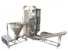 全自动(自动灌装封口) 1,包装机主机,全部采用不锈钢制作,程序控制系统采用进口工业级元器件,电器运行执行元件采用国际品牌产品,质量可靠,采购替换方便。进口触摸屏设计使用方便操作简单,对操作人员无需专门培训。进口微电脑控制,拥有自主检查功能,当需要维护和保养时主动提醒,可配多套独立灌装系统,采用快速链接接头,使用高级智能程序控制,灌装精度高,能自动调节灌装量,包装能力可达1--1.5吨|小时,85度以上完成包装封口,避免二次污染,提高工作效率,降低生产成本, 2,灌装系统,柱塞式充填,灌装,结构简单,成熟可靠。不使馅料旋转,搅拌,不会影响馅料颜色,口感域品质,气动控制,清洁安全可靠,不锈钢料斗,可完成水果馅料等高粘度馅料的灌装。灌装管道采用塑料材质,具有保温性能。内壁不粘馅料,管径大易清洗。 3,电脑控制系统,进口工业电脑,触摸屏控制系统,稳定可靠,电脑控制系统可实现自动灌装量调整,无需人工干预,对“卷膜异常”。“微调超限”。“紧急停止”自动报警 4,主要用途及适用范围 基本功能:灌装,制袋,封口,重量调节,反馈调节 适合高粘体物料,自主开发设计,拥有自主知识产品的设备 特点:1)灌装系统不波坏馅料组织性质 2)不改馅料颜色,不透油 3)塑胶管道不粘料,方便清洗 4)灌装精度自动调整 包装能力:1-1.5吨/小时 包装材料:塑料复合薄膜(NY/PE PET/PE OPP等) 卷膜宽度:530mm 封口方式:三边封 适合产品:豆沙,莲蓉,水果馅,糖浆,墙纸胶,糯米胶,湿胶等高粘性物料 灌装范围:500G-6000G 自备设备:空气压缩机(7.5公斤,最高压力:1.2mpa 启动压力0.8mpa