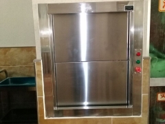 中厨厨具专业生产传菜梯是指用于宾馆、厨房、食堂、饭店、 幼儿园、商厦、工厂等部门,用于传送食品、餐具、日用品的电梯。传菜梯一般分为落地式和窗口式,可提供快捷、方便、经济的小型货物运输,为用户大大节省了时间及人力资源。(1)电锁功能: 基站呼梯盒配备电锁,用于启动和关闭电梯的控制回路; (2)运行故障保护功能: 当超出正常运行时间10秒内,电梯停止运行,以防烧坏电机; (3)故障自显示功能: 将诊断后的故障以代码形式显示; (4)故障自诊断功能: 能够诊断故障现象及原因; (5)自恢复保险功能: 控制信号回路如果短路保险自动断开,当故障消除后保险自动接通; (6)接触器粘连保护功能: 如接触器线圈断电后接点未能断开时,防止再次运行以保障安全; (7)呼梯应答功能: 按下呼梯按钮,被呼梯层按钮数字指示灯亮,到站后撤销记忆指示灯灭; (8)蜂鸣提示功能: 具有到站蜂鸣提示功能; (9)开关门状态指示功能: 电梯运行到站后开启层门,数码显示开门状态并提示此梯在本层使用; (10)运行方向显示功能: 运行方向由上下行发光箭头显示; (11)层楼显示功能: 电梯运行所到楼层由数码显示;