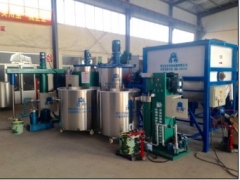 乳胶漆设备能够独立完成乳化、分散、研磨、细化、冷却、过滤、真空自动吸料以及半自动灌装等全过程。制浆和调漆在同一个罐内完成。此涂料成套设备既可生产水性涂料,也可生产油漆。 乳胶漆设备的主体设备为乳化分散罐,调漆罐,管线式乳化机,卧式砂磨机,粉体加料罐,静态混合器,液体计量器,空压机,电控装置,灌装机等