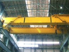 QD桥式起重机适用于厂矿、企业的车间、仓库等,在室内或露天的固定跨间作一般装卸及起重运输工作。 本机按使用繁忙程度分为中级与重级两种工作制度;中级适用于机械加工,金属结构,装配等车间;重级适用于冶炼车间和参加连续生产的搬运工作。 本机由箱形桥架,大车运行机构、小车、电气设备四部分构成。全部机构均在操作室内操纵。 露天使用时,带有防雨设备。 QD型5-50吨吊桥式起重机是采用国际先进标准制造的系列产品。整机结构新颖、造型美观、工艺性好、操作灵活平稳、安全可靠。