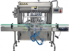 6头卧式搅拌酱料灌装机广泛应用于颗粒酱料的的生产与分装行业,可连续自动运行灌装。机器设计紧凑合理、外形简洁美观,灌装量调节方便。专业针对颗粒酱料,卧式搅拌,针对大颗粒酱料灌装过程容易出现油料分离现象,该灌装生产线具有六个同步注脂灌装头,可均匀地被挤压灌装到容器里,外观美观大方,全不锈钢,易清洁,采用韩国光眼装置,LG韩国PLC、法国电器元件,可连续自动运行灌装,无瓶不灌装,配置防滴漏装置。可根据客户需求配置酱料瓶真空旋盖、自动贴标、喷码等配套设备。
